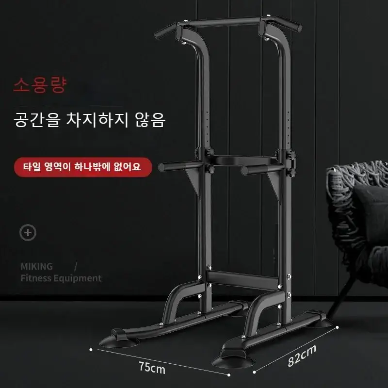 Black Metal Power Tower for Strength Training and Home Gym Fitness